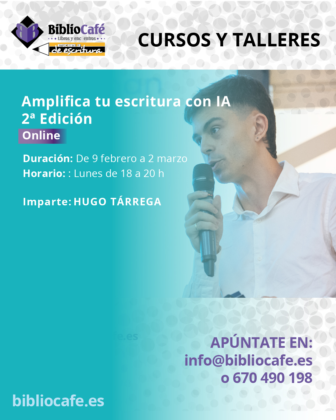 Etiquetas: amplifica tu escritura con IA, curso escritura, curso escritura online, hugo tárrega, Inteligencia artificial, taller escritura, taller online.